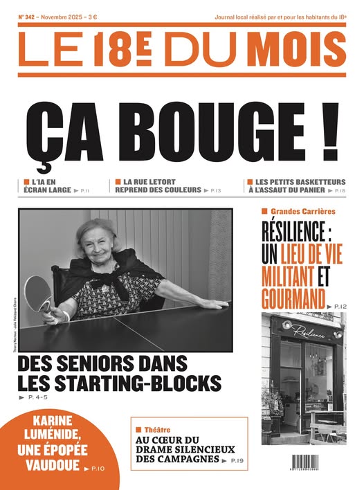 Que ce soient les riverains de la porte de Clignancourt qui ont réinvesti l’espace public en repeignant les potelets de la rue Letort, les bambins de l’école de mini-basket qui foulent le parquet de l’Arena de la porte de La Chapelle, les seniors de l’Ehpad des Jardins de Montmartre qui côtoient les salariés d’une start-up ou les membres de Mistral AI, fleuron de l’intelligence artificielle qui s’installera rue des Poissonniers en janvier, ils en ont dans le ventre, les bras, la tête et les jambes ! Collectif, sportif, intergénérationnel et attractif, le 18e reste en parallèle toujours aussi engagé. En témoigne le coffee shop Résilience et l’antenne locale d’Urgence Palestine qui poursuit ses différentes actions dans notre arrondissement. Enfin, en cette période automnale, les équipements culturels de notre territoire sont plus que jamais en mouvement eux aussi. La preuve, avec nos cinq pages qui font la part belle aux pièces, expos et festivals des semaines à venir.